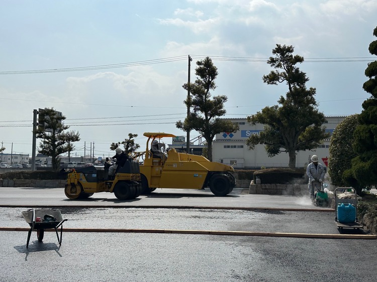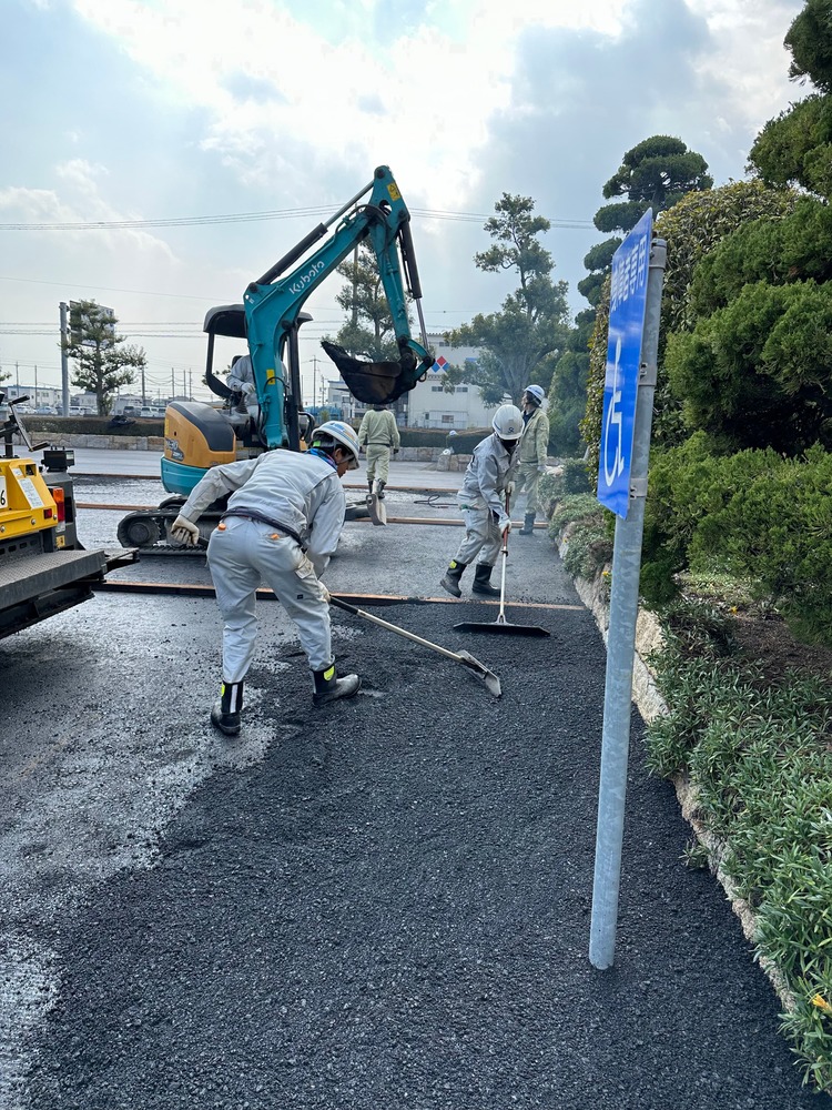 駐車場舗装工事(飛島村) ホーム > 現場日記一覧 > 駐車場舗装工事(飛島村) 駐車場舗装工事(飛島村) 2024.03.05 今日は、飛島村役場の駐車場舗装の現場に差し入れに行って来ました。 型枠で6つに分けて舗装を行います。どうしても気温が低いと合材の温度が下がってしまうので、継ぎ目の所はバナーであぶって温めながらローラーで転圧を行いました。2月から始まった工事でしたが、事故なく無事に完成することが出来ました。 今日も1日ご安全に❕❕